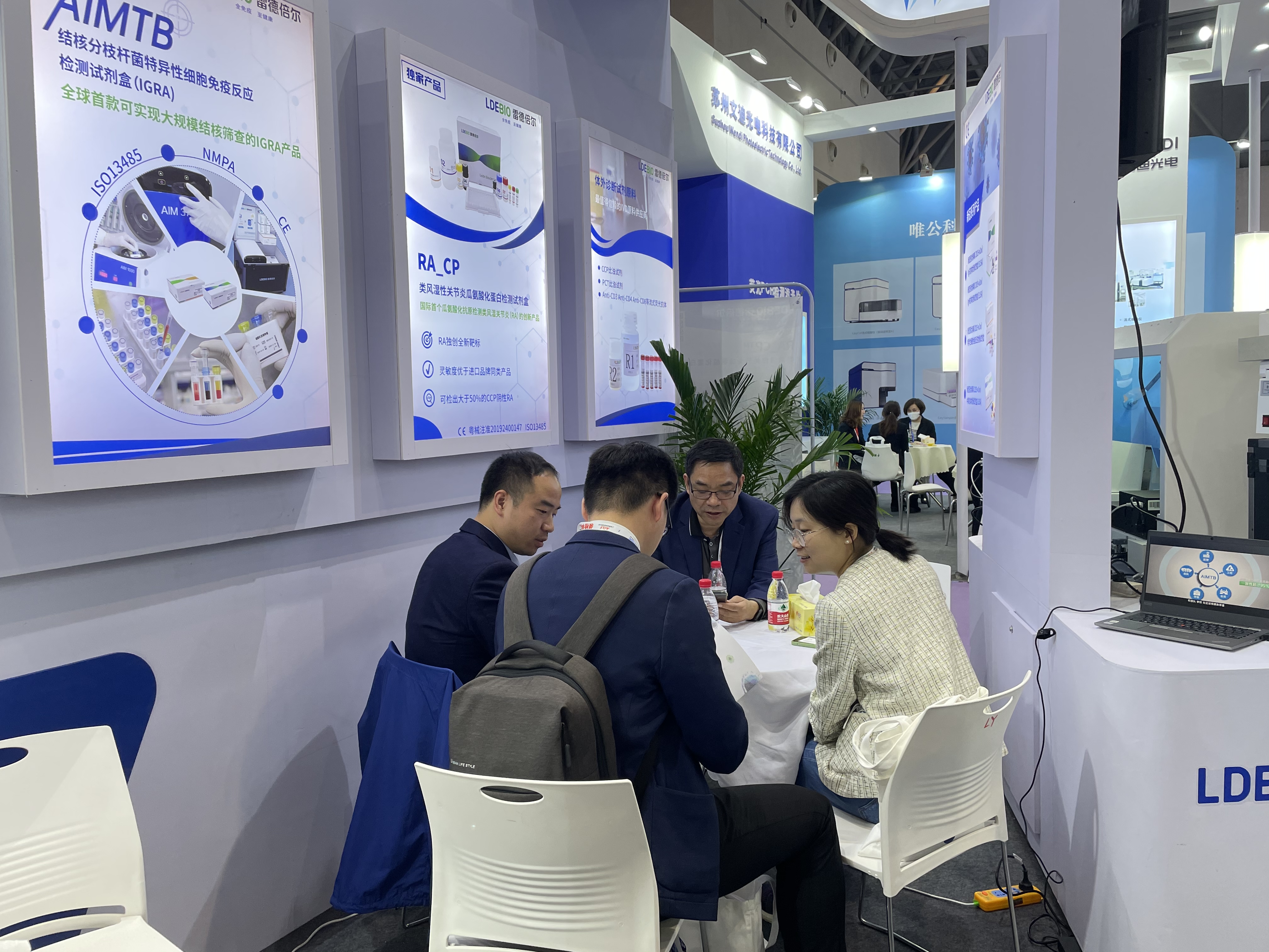 會中,各來賓紛紛駐足我司展臺,與我司研發(fā)專家進行產品知識與應用的交流,全國首個可移動高通量結核感染篩查的產品-AIMTB受到與會來賓的一致青睞。2021年全國兩會,十三屆全國政協(xié)委員、教科衛(wèi)體委員會副主任、中國藥學會理事長孫咸澤在會議中提案:加強結核病防治。要達到此目標,就要對高風險人群,甚至全人群進行結核篩查,對高風險人群進行預防性治療,這也是中國醫(yī)學科學院病原生物學研究所金奇博士和高磊博士提出的“關口前移”。雷德結核感染檢測系統(tǒng)-AIMTB核心原料自研自產,操作簡單,可進行活動性結核的輔助診斷及潛伏結核感染篩查,適用于醫(yī)療機構及體檢篩查市場的高通量需求,對于快速加強結核病防治、加速推進預防性治療具有重要意義。